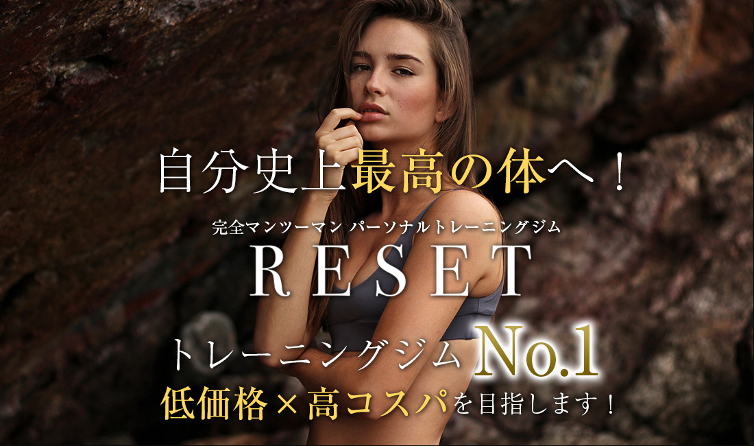 1回3,150円からの完全マンツーマン・パーソナルトレーニングジム「Reset(リセット)」 4週間減量プログラムは同時に食事指導も行うことで、ダイエット・ボディメイクをトータルでサポート! 最短での理想の実現を目指します。